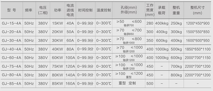 GJ-4A型多用途感应加热器,主要适用于轴承、齿轮、联轴器、衬套等各种环状孔形工作的加热过盈装配